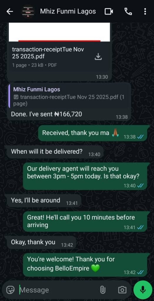 We'll send your product to your doorstep. We offer payment on delivery (cash/transfer).